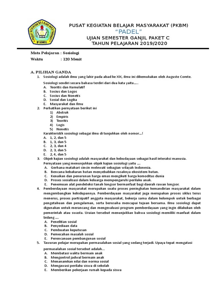 Soal Ujian Paket C 2020 / Soal Dan Kunci Jawaban Ujian Sekolah Bahasa Indonesia Smp Mts Tahun Pelajaran 2019 2020 Didno76 Com / Dari pihak sekolah menyediakan akses soal ujian secara online, .